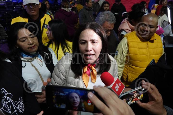 CIUDAD DE MÉXICO, 30NOVIEMBRE2023.- Karen Quiroga, ex diputada local, durante la salida de la Asamblea Vecinal a la que no asistió Santiago Taboada, aspirante a la candidatura por la Ciudad de México por el Frente Amplio, en la Plaza Juárez, colonia San Lorenzo Tezonco, Iztapalapa. FOTO: GRACIELA LÓPEZ /CUARTOSCURO.COM