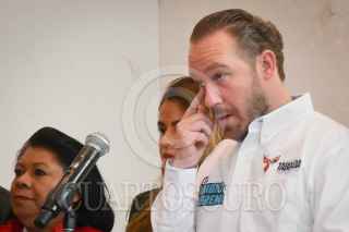 CIUDAD DE MÉXICO, 01DICIEMBRE2023.- Santiago Taboada, precandidato a la jefatura de Gobierno de la capital por el Frente Amplio por México, en compañía de legisladores del Congreso de la Ciudad de México, ofreció conferencia de prensa en la que presentó juicio por vulneración a sus derechos electorales en contra de legisladores de Morena a quienes acusó de buscar impedir su candidatura luego de suspender la sesión del congreso local en la que se tenía contemplada aprobar la licencia definitiva como a su cargo como Alcalde de Benito Juárez. FOTO: MARIO JASSO/CUARTOSCURO.COM