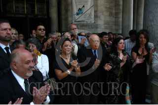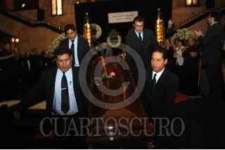 MÉXICO, D.F., 02JUNIO2007.-Familiares y amigos despidieron con aplausos el feretro del directo de cine Juan José Gurrola Iturriaga al termino del homenaje luctuoso llevado acabo en su honor en el Palacio de Bellas. FOTO: GUILLERMO PEREA/CUARTOSCURO.COM