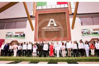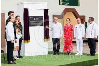 TULUM, QUINTANA ROO. 01DICIEMBRE2023.- Andrés Manuel López Obrador, presidente Constitucional de los Estados Unidos Mexicanos preside Aeropuerto Internacional de Tulum “Felipe Carrillo Puerto”, entrega de instalaciones. Lo acompañan Manuel Bartlett Díaz, director general de la Comisión Federal de Electricidad (CFE); Miguel Torruco Marqués, secretario de Turismo; Raquel Buenrostro Sánchez, secretaria de Economía; Ariadna Montiel Reyes, secretaria de Bienestar; Alicia Bárcena Ibarra, secretaria de Relaciones Exteriores; Salomón Jara Cruz, gobernador Constitucional del Estado de Oaxaca; Rutilio Escandón Cadenas, gobernador Constitucional del Estado de Chiapas; María Elena Hermelinda Lezama Espinosa, gobernadora Constitucional del Estado de Quintana Roo; Luis Cresencio Sandoval González, secretario de la Defensa Nacional; Beatriz Gutiérrez Mueller, esposa del presidente Constitucional de los Estados Unidos Mexicanos; José Rafael Ojeda, secretario de Marina; Layda Elena Sansores San Román, gobernadora Constitucional del Estado de Campeche; Carlos Manuel Merino Campos, gobernador Constitucional del Estado de Tabasco; Cuitláhuac García Jiménez, gobernador Constitucional del Estado de Veracruz; Sergio Salomón Céspedes Peregrina, gobernador Constitucional del Estado de Puebla; Rosa Icela Rodríguez Velázquez, secretaria de Seguridad y Protección Ciudadana y María Luisa Albores González, secretaria de Medio Ambiente y Recursos Naturales. FOTO: PRESIDENCIA/CUARTOSCURO.COM
