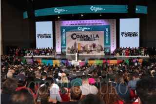 SALTILLO, COAHUILA, 01DICIEMBRE2023.- Manolo Jiménez Salinas, nuevo gobernador de Coahuila, rindió protesta ciudadana ante simpatizantes del Partido Acción Nacional (PAN) en el auditorio del parque Las maravillas en Saltillo, Coahuila. FOTO: ALEJANDRO RODRÍGUEZ/CUARTOSCURO.COM