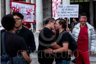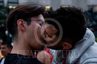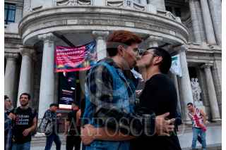 CIUDAD DE MÉXICO, 01DICIEMBRE2023.- Integrantes de la comunidad LGBTTTIQPA+ se manifestaron en el marco del Día Mundial de la Lucha contra el Sida con un Besotón frente al Palacio de Bellas Artes. FOTO: GALO CAÑAS/CUARTOSCURO.COM
