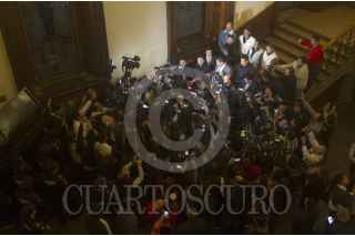 MONTERREY, NUEVO LEÓN, 02DICIEMBRE2023.- La Suprema Corte de Justicia ordena que Luis Enrique Orozco tome el cargo como gobernador interino de Nuevo León. Sin embargo, Samuel García anuncia durante la rueda de prensa de Orozco que regresa a la gubernatura del estado y deja la candidatura hacia la Presidencia. FOTO: GABRIELA PÉREZ MONTIEL / CUARTOSCURO.COM