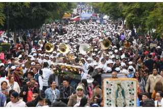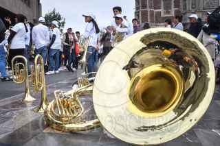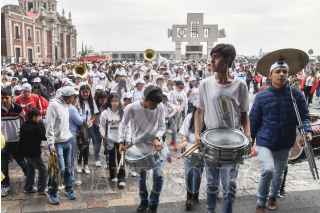 CIUDAD DE MÉXICO, 02DICIEMBRE2023.- Un conjunto de niños y jóvenes de la Escuela Infantil y Juvenil de Música de Banda “Rebeca Camacho Ocaña” de Tlalpujahua, Michoacán, acompañados de sus padres y familiares, arribaron a la Basílica de Guadalupe para orar y agradecer a la Vírgen de Guadalupe. Ésto previo a la celebración del 12 de diciembre. El proyecto de la música en banda por parte de la escuela busca alejar de la criminalidad que se vive en el pais a niños y adolescentes. FOTO: MARIO JASSO/CUARTOSCURO.COM