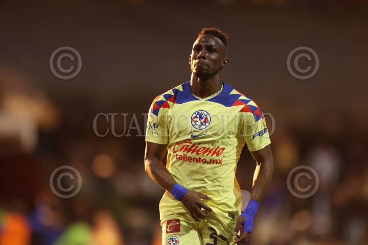 CIUDAD DE MÉXICO, 02DICIEMBRE2023. Festejo del jugador Julián Quiñónez tras anotar de tiro penal durante el partido de fútbol América vs León correspondiente a los cuartos de final juego de vuelta del Torneo Apertura 2023 de Liga BBVA MX, en el Estadio Azteca. FOTO: EDGAR NEGRETE/CUARTOSCURO.COM