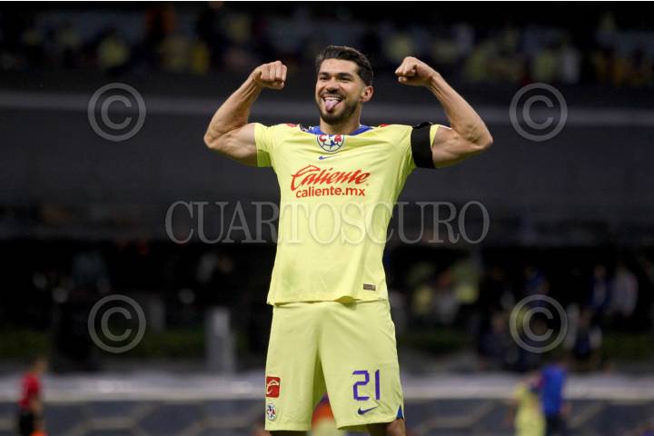 CIUDAD DE MÉXICO, 02DICIEMBRE2023. Henry Martín festeja su anotación durante el partido de fútbol América vs León correspondiente a los cuartos de final juego de vuelta del Torneo Apertura 2023 de Liga BBVA MX, en el Estadio Azteca. FOTO: EDGAR NEGRETE/CUARTOSCURO.COM
