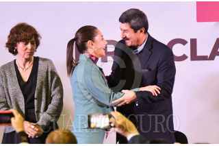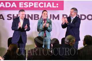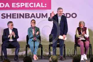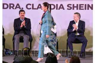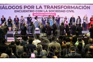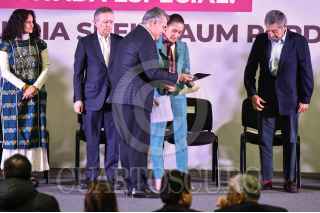CIUDAD DE MÉXICO, 03DICIEMBRE2023.- Claudia Sheinbaum, precandidata a la presidencia por Morena, acudió como invitada especial para presentar "Diálogos por la transformación: encuentro con la sociedad civil" realizado en las instalaciones del Museo Interactivo de Economía (MIDE), Estuvo acompañada de Arturo Zaldívar, ex ministro de la SCJN, y Juan Ramón de la Fuente, ex rector de la UNAM. FOTO: MARIO JASSO/CUARTOSCURO.COM