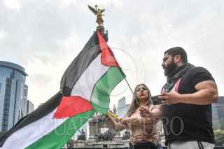 CIUDAD DE MÉXICO, 03DICIEMBRE2023.- Decenas de personas marcharon del Ángel de la Independencia a la glorieta del Ahuehuete para exigir que cesen los ataques contra el pueblo palestino derivado del conflicto armado entre Israel y Hamas. FOTO: MARIO JASSO/CUARTOSCURO.COM