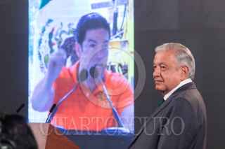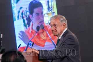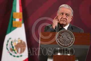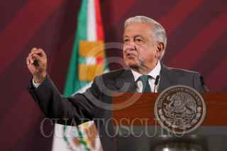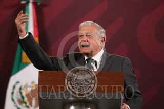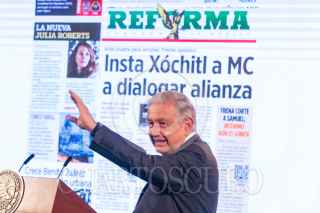 CIUDAD DE MÉXICO, 04DICIEMBRE2023.- Andrés Manuel López Obrador, Presidente de México, muestra una portada del periódico Reforma (la cual lleva de ocho columnas que Xóchitl Gálvez llama a MC a dialogar alianza), al momento de estar hablando del conflicto constitucional sobre quién es el actual gobernador de Nuevo León, esto luego de que el gobernador Samuel García de Movimiento Ciudadano dejara su cargo para buscar la candidatura presidencial de ese partido. FOTO: MOISÉS PABLO/CUARTOSCURO.COM
