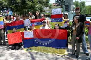 MÉXICO, D.F., 02JUNIO2007.- Integrantes de la comunidad venezolana en Mexico se manifestaron en contra al presidente de Venezuela Hugo Chavez sobre la avenida Paseo de la Reforma y Campos Eliseos en la colonia Polanco, por los recientes hechos contra la libertad de expresión en contra la Televisoras Radio Caracas Televisión y Globo Visión. FOTO: PEDRO MARRUFO/CUARTOSCURO.COM