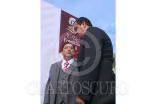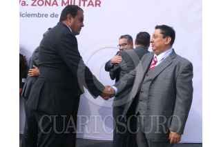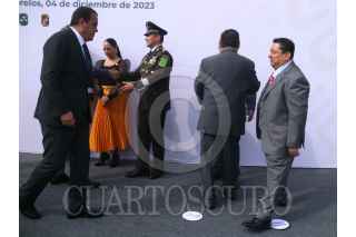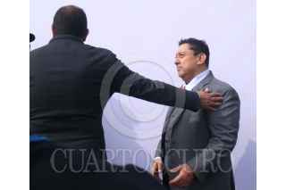 CUERNAVACA, MORELOS, 04DICIEMBRE2023.- Secuencia fotográfica del saludo y breve platica entre el gobernador Cuauhtémoc Blanco Bravo y el fiscal de Justicia Uriel Carmona Gándara, al final de la toma de protesta y juramento de bandera de Julio Cesar Moreno, nuevo comandante de la 24 Zona Militar. El gobernador y el fiscal han tenido una tormentosa relación, donde se acusan de evadir responsabilidades en el tema de la impartición de justicia. FOTO: MARGARITO PÉREZ RETANA/CUARTOSCURO.COM