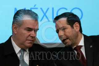 CIUDAD DE MÉXICO, 04DICIEMBRE2023- Franciso Cervantes Díaz, presidente del Consejo Coordinador Empresarial, y José Antonio Abugaber Andonie, presidente de la Cocamin, conversaron durante la presentación de la nueva era de la política industrial digital en México, realizada en el Club de Industriales. FOTO: GRACIELA LÓPEZ /CUARTOSCURO.COM