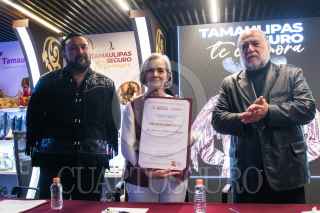 CIUDAD DE MÉXICO, 05DICIEMBRE2023.- María Santiago de Villareal, presidenta del Sistema DIF de Tamaulipas, recibió un reconocimiento por la participación de Tamaulipas en Punto México de la Secretaría de Turismo. El diploma le fue entregado por Miguel Torruco, secretario de Turismo. FOTO: MOISÉS PABLO/CUARTOSCURO.COM