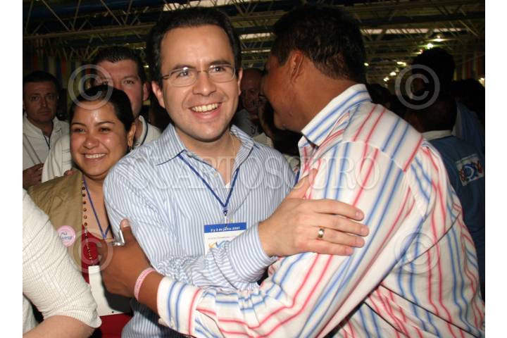 LEÓN, GUANAJUATO, 02JUNIO2007.- Los consejeros electos del PAN celebran su victoria en las elecciones que se realizaron en la XX Asamblea Nacional Ordinaria en donde se renovo el Consejo Politico del partido. En primer plano Francisco Salazar y Carlos Abascal. FOTO: MOISÉS PABLO/CUARTOSCURO.COM