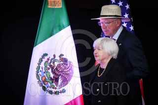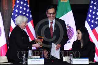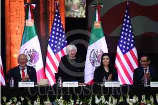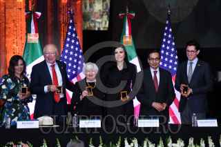 CIUDAD DE MÉXICO, 06DICIEMBRE2023.- Janet Yellen, secretaria del Tesoro de los Estados Unidos; y Ken Salazar, embajador de los Estados Unidos en México, durante el evento protocolario por el inicio de la circulación de la Moneda de 20 pesos Conmemorativa de los “Doscientos Años de Relaciones Diplomáticas entre los Estados Unidos Mexicanos y los Estados Unidos de América”. FOTO: MARIO JASSO/CUARTOSCURO.COM