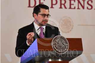 CIUDAD DE MÉXICO, 07DICIEMBRE2023.- Román Meyer, secretario de Desarrollo Agrario Territorial y Urbano, durante su intervención en la conferencia de prensa matutina en la que presentó resultados del programa de mejoramiento urbano. FOTO: MARIO JASSO/CUARTOSCURO.COM