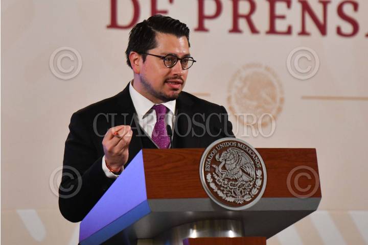 CIUDAD DE MÉXICO, 07DICIEMBRE2023.- Carlos Martínez Velázquez, director general de Instituto del Fondo Nacional de la Vivienda para los Trabajadores (INFONAVIT), durante su intervención en la conferencia de prensa matutina realizada en Palacio Nacional. FOTO: MARIO JASSO/CUARTOSCURO.COM
