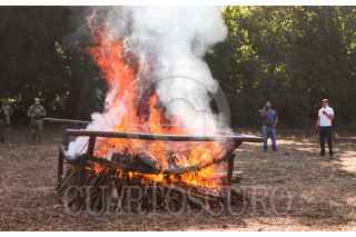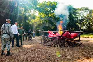 TAPACHULA, CHIAPAS. 07DICIEMBRE2023.- La SEDENA incineró 400 Kilo de droga decomisada en la Región costa de chiapas. Durante los ultimos meses. Los tres niveles de Gobierno han efectuado operativos logrando incautar diversos estupefacientes, con un valor económico de $ 99 millones 750 mil pesos. En las instalaciones del campo del Futbol de la 36 Zona Militar es donde se efecuto la destrucción de enervantes, 6.7 kgs narcóticos diversos y 399 kgs de cocaina.En el evento estuvieron presente, General.Bgda. D.E.M Santos Gerardo Soto Comandate de la 36 zona Militar. Cor. Cab. Pedro Álvarez Carillo, Titular de la Unidad de Investigación y Mitigación, Sub Delegado de la Fiscalía Públicamente Miguel Rigoberto Zuñiga. FOTO: DAMIÁN SÁNCHEZ/CUARTOSCURO.COM