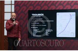 CIUDAD DE MÉXICO, 07DICIEMBRE2023.- Antonio Esteva titular de Obras y el titular de Movilidad; Andrés Lajous acompañaron al jefe del Gobierno de la Capital, Martí Batres Guadarrama en la Presentación del Proyecto de la línea 12 del Trolebús en Avenida Aztecas, al sur de la Ciudad en la alcaldía Coyoacán. FOTO: GOBIERNO DE LA CIUDAD/CUARTOSCURO.COM