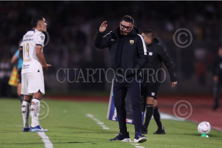 CIUDAD DE MÉXICO, 07DICIEMBRE2023. El DT Antonio Mohamed se lamenta durante el partido de fútbol Pumas vs Tigres correspondiente a la semifinal de ida del Torneo Apertura 2023 de Liga BBVA MX, en el Estadio Olímpico Universitario. FOTO: EDGAR NEGRETE/CUARTOSCURO.COM