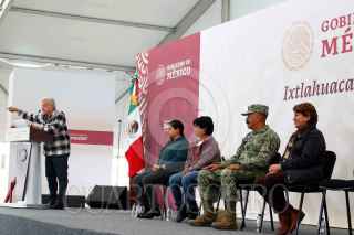 IXTLAHUACA, ESTADO DE MÉXICO, 08DICIEMBRE2023. Andrés Manuel López Obrador, presidente Constitucional de los Estados Unidos Mexicanos en evaluación Programas para el Bienestar en Ixtlahuaca. Lo acompañan Pamela López Ruiz, directora general del Programa “La Escuela es Nuestra”; Edna Elena Vega Rangel, subsecretaria de Ordenamiento Territorial y Agrario de la Secretaría de Desarrollo Agrario, Territorial y Urbano y responsable del “Programa de Vivienda”; Salvador Fernando Cervantes Loza, director general de Ingenieros de la Secretaría de la Defensa Nacional; Delfina Gómez Álvarez, gobernadora Constitucional del Estado de México; y Abuzeid Lozano Castañeda, presidente municipal de Ixtlahuaca. FOTO: PRESIDENCIA/CUARTOSCURO.COM