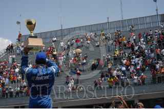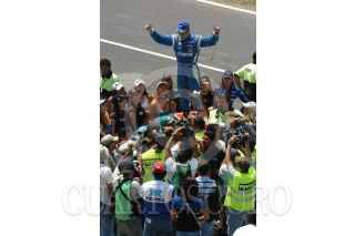 MÉXICO D.F. 03JUNIO2007.-El piloto German Quiroga de la escuderia Motorola Telcel festeja su triunfo de la serie NASCAR que se realizo en el Autodromo de los Hermanos Rodríguez. FOTO: GUILLERMO PEREA/CUARTOSCURO.COM