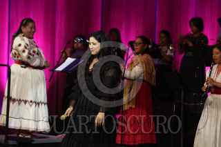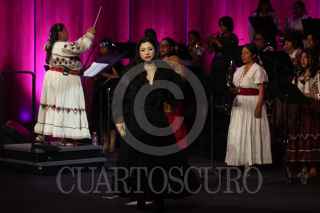 CIUDAD DE MÉXICO, 09DICIEMBRE2023. Mon Laferte y Mujeres del viento florido se presentaron en un concierto de intercambio cultural entre México y Chile, en el Palacio de Bellas Artes. Dónde además de escuchar temas compuestos por la cantautora chilena-mexicana, se interpretó un repertorio de música mexicana. FOTO: EDGAR NEGRETE LIRA/CUARTOSCURO.COM