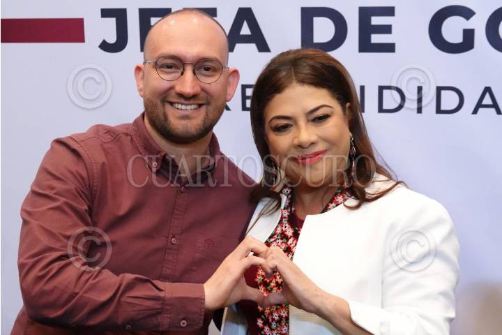 CIUDAD DE MÉXICO, 10DICIEMBRE2023.- El diputado Temistócles Villanueva y Clara Brugada, precandidata a la Jefatura de Gobierno por Morena, durante la presentación de su equipo de precampaña en el Club de Periodistas FOTO: GRACIELA LÓPEZ /CUARTOSCURO.COM