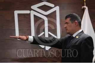 CIUDAD DE MÉXICO, 10DICIEMBRE2023. - El nuevo consejero presidente del INAI, Adrián Alcalá, escucha la participación de sus compañeras consejeras. FOTO: DANIEL AUGUSTO /CUARTOSCURO.COM