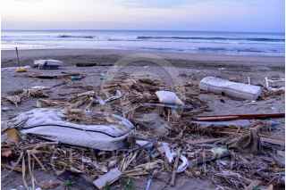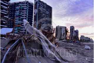 ACAPULCO, GUERRERO, 10DICIEMBRE2023.- A 46 días del impacto del huracán Otis en Acapulco, en la Playa Revolcadero aún se observan los severos estragos que causó el fenómeno natural, ubicada en la exclusiva Zona Diamante esta zona contaba con hoteles de Gran Turismo y residenciales de lujo. En la playa se observan todos muebles que evidentemente salieron volando de los departamentos y habitaciones, como colchones y sillas. FOTO: CARLOS ALBERTO CARBAJAL/CUARTOSCURO.COM