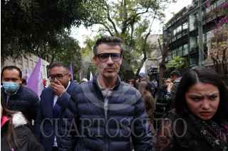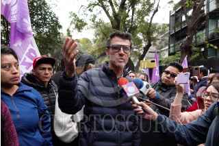 CIUDAD DE MÉXICO, 11DICIEMBRE2023.- El actor Leonardo García ofreció una conferencia de prensa en la que denuncia a la Fiscalía General de Justicia de la ciudad a la inmobiliaria Guillén Rivera debido a que fue desalojado de su departamento en la calle de Tennynson, en Polanco. FOTO: GRACIELA LÓPEZ/CUARTOSCURO.COM