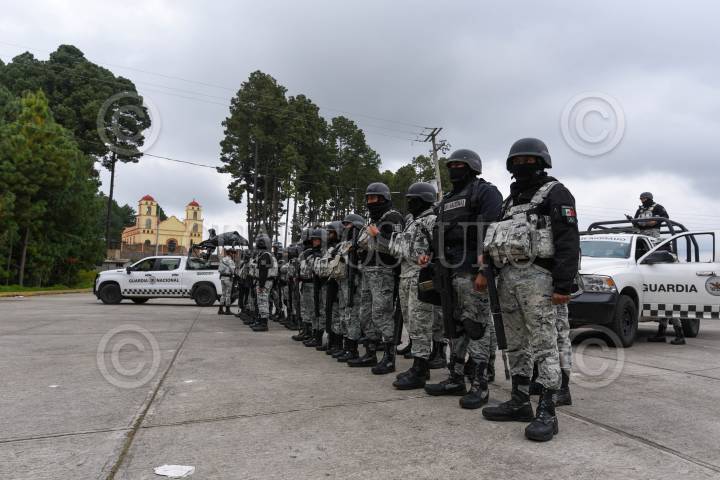 TEXCALTITLÁN, ESTADO DE MÉXICO, 11DICIEMBRE2023.- A unos días del enfrentamiento que se registró en Texcapilla, municipio de Texcaltitlán, en donde murieron 14 personas, elementos de la Policía Estatal, Ejército, Guardia Nacional resguardan este poblado que cansado de la inseguridad y extorsiones por parte de un grupo criminal, las calles lucen solitarias y los negocios cerrados, el temor mantiene a los pobladores en sus hogares. FOTO: CRISANTA ESPINOSA AGUILAR /CUARTOSCURO.COM