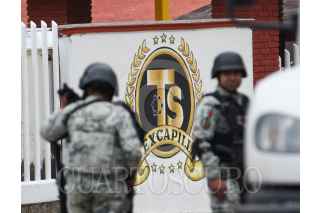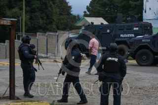 TEXCALTITLÁN, ESTADO DE MÉXICO, 11DICIEMBRE2023.- A unos días del enfrentamiento que se registró en Texcapilla, municipio de Texcaltitlán, en donde murieron 14 personas, elementos de la Policía Estatal, Ejército, Guardia Nacional resguardan este poblado que cansado de la inseguridad y extorsiones por parte de un grupo criminal, las calles lucen solitarias y los negocios cerrados, el temor mantiene a los pobladores en sus hogares. FOTO: CRISANTA ESPINOSA AGUILAR /CUARTOSCURO.COM