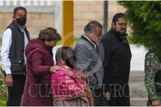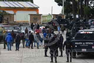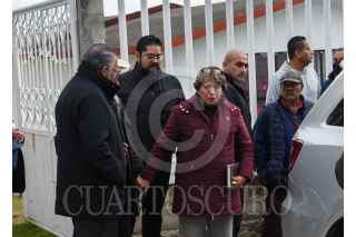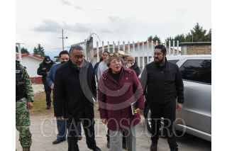 TEXCALTITLÁN, ESTADO DE MÉXICO, 11DICIEMBRE2023.- Bajo un fuerte dispositivo de seguridad arribó al poblado Texcapilla, en el municipio de Texcaltitlán, la Gobernadora del Estado de México, Delfina Gómez Álvarez, Horacio Duarte, Secretario General de Gobierno y Andrés Andrade Téllez, Secretario de Seguridad estatal y sostuvieron una reunión con los habitantes de este poblado cansado por las extorsiones de grupos criminales, la gobernadora mexiquense afirmó que las fuerzas federales permanecerán en la región para garantizar la seguridad de la población. FOTO: CRISANTA ESPINOSA AGUILAR /CUARTOSCURO.COM