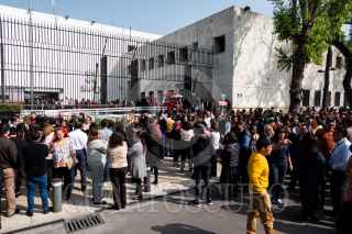 CIUDAD DE MÉXICO, 12DICIEMBRE2023.- Debido a los microsismos que se registraron en la Ciudad de México, personal de Sistema de Administración Tributaria (SAT) fueron desalojados de las oficinas ubicadas en avenida Hidalgo, en el Centro Histórico. Según datos del Sismológico Nacional, el epicentro tuvo lugar en la alcaldía Álvaro Obregón. FOTO: GALO CAÑAS/CUARTOSCURO.COM