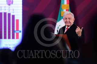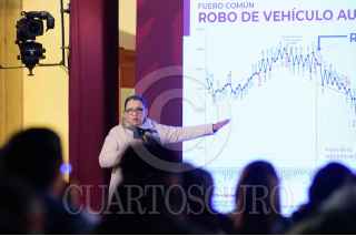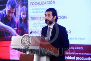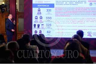 CIUDAD DE MÉXICO, 13DICIEMBRE2023.- Marath Bolaños López, secretario del Trabajo y Previsión Social; durante su intervención en la mañanera. FOTO: PRESIDENCIA/CUARTOSCURO.COM