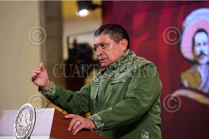 CIUDAD DE MÉXICO, 13DICIEMBRE2023.- Luis Cresencio Sandoval, secretario de la Defensa Nacional,. durante su intervención en la mañanera. FOTO: PRESIDENCIA/CUARTOSCURO.COM