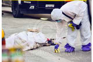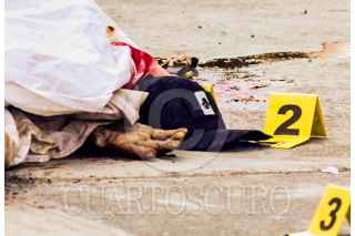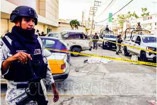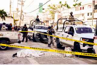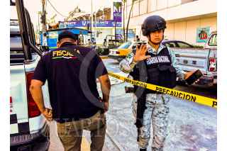 ACAPULCO, GUERRERO. 13DICIEMBRE2023.- Un hombre fue asesinado a balazos está mañana, sobre la avenida Cuauhtémoc de Acapulco, en el lugar agentes de la Guardia Nacional se desplegaron para resguardar mientras se hacía las diligencias y el peritaje, y también intentaron impedir que los periodistas realizaran su trabajo en el lugar de los hechos. FOTO: CARLOS CARBAJAL/CUARTOSCURO.COM