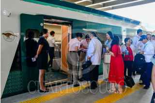 SAN FRANCISCO, CAMPECHE, 15DICIEMBRE2023.- Las y los primeros visitantes del Tren Maya hicieron uso de las instalaciones. Entre los que destacaron el gobernador de Veracruz, Cuitláhuac García y Ariadna Montiel Reyes, secretaria del Bienestar, así como los diversos medios de comunicación. FOTO: PRESIDENCIA/CUARTOSCURO.COM