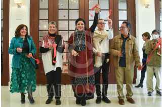 CIUDAD DE MÉXICO, 15DICIEMBRE2023.- Alejandra Frausto, secretaria de Cultura Federal; Teresa Márquez Martínez, directora del Centro Nacional para la Preservación del Patrimonio Cultural Ferrocarrilero, y Homero Fernández Pedroza, director general del Complejo Cultural Los Pinos, encabezaron la inauguración de la exposición: “El Ferrocarril Mexicano, La primera ruta ferroviaria de la nación” en el lobby de la Casa Miguel Alemán, en el Complejo Cultural Los Pinos. FOTO: MARIO JASSO/CUARTOSCURO.COM