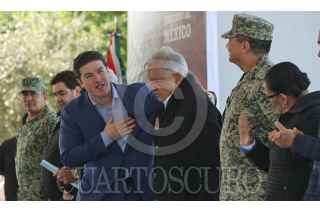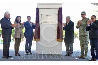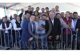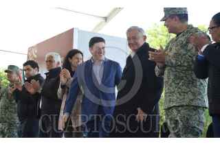 CIUDAD BENITO JUÁREZ, NUEVO LEÓN, 16DICIEMBRE2023.- el presidente Andrés Manuel López Obrador y el gobernador de Nuevo León, Samuel García, inauguraron el segundo acueducto de la Presa El Cuchillo II. El Cuchillo, aportará 5,000 litros por segundo de agua al área metropolitana de Monterrey. La obra, fue realizada en dos fases y tuvo una inversión de 12.244 millones de pesos, monto Federal correspondiente de 6,543 millones de pesos y gasto Estatal de 5,701 mdp, según cifras oficiales del gobierno de Nuevo León. FOTO: CUARTOSCURO.COM