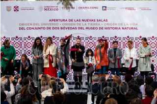 CIUDAD DE MÉXICO, 16DICIEMBRE2023.- Martí Batres Guadarrama, jefe de gobierno de la Ciudad de México, en compañía de Alejandra Frausto, secretaria de Cultura, Marina Robles, secretaria del Medio Ambiente capitalina, y autoridades del Bosque de Chapultepec encabezaron la inauguración de nuevas salas del conjunto de dos bóvedas del Museo de Historia Natural, en la que se explica la historia del Universo y la vida. FOTO: GALO CAÑAS/CUARTOSCURO.COM