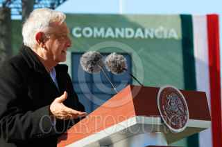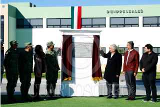 NUEVO LAREDO, TAMAULIPAS, 16DICIEMBRE2023.- Andrés Manuel López Obrador, presidente de México, presidió la ceremonia de inauguración de las instalaciones del 16/o. Regimiento de Caballería Motorizado. El mandatario estuvo acompañado por: Issac Edmundo Alvarado Ferreti, comandante del 16/o. Regimiento de Caballeria Motorizado; André Georges Foullon Van Lissum, director general de la Agencia Nacional de Aduanas de México; Maximiliano Cruz Ramos, comandante de la IV Región Militar; Luisa María Alcalde Luján, Secretaria de Gobernación; Luis Cresencio Sandoval González, secretario de la Defensa Nacional; Américo Villarreal Anaya, gobernador Constitucional del Estado de Tamaulipas; Juan Pablo de Bottón Falcón, subsecretario de Egresos de la Secretaría de Hacienda y Crédito Público; Juan José Gómez Ruiz, comandante de la 8/a. Zona Militar; José Antonio Hernández Macias, comandante de la Guarnición Militar de Nuevo Laredo, Tamaulipas y Francisco Alvarado Terán, coordinador Estatal de la Guardia Nacional de Tamaulipas. FOTO: PRESIDENCIA/CUARTOSCURO.COM