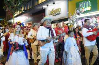 XALAPA, VERACRUZ, 17DICIEMBRE2023.- El gobernador Cuitláhuac García y pobladores participaron en el desfile "Las Ramas Iluminadas", los asistentes caminan con ramas ataviadas con adornos navideños. Trabajadores de diferentes dependencias de gobierno conformaron varios contingentes. FOTO: YERANIA ROLÓN/CUARTOSCURO.COM