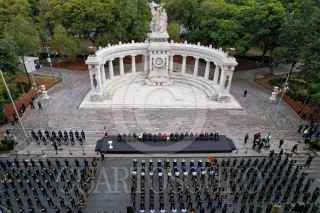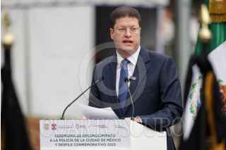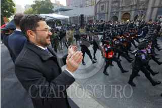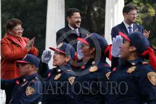 CIUDAD DE MÉXICO, 17DICIEMBRE2023.- Ernestina Godoy, Fiscal General de Justicia de la Ciudad de México; Pablo Vázquez Camacho, Secretario de Seguridad Ciudadana, y Martí Batres, Jefe de Gobierno, encabezaron el desfile del Día de la Policía y entrega de reconocimientos a elementos destacados en el Hemiciclo a Juárez. FOTO: GOBIERNO DE LA CIUDAD DE MÉXICO/CUARTOSCURO.COM