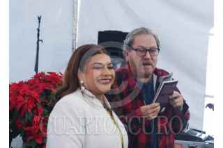 CIUDAD DE MÉXICO, 17DICIEMBRE2023.- Clara Brugada, precandidata de Morena a la Jefatura de Gobierno, acompaño a Paco Ignacio Taibo II y a su esposa Paloma Sáinz en una jornada de lectura de la Brigada para Leer en Libertad en la Alameda Central. FOTO: PRENSA CLARA BRUGADA/CUARTOSCURO.COM