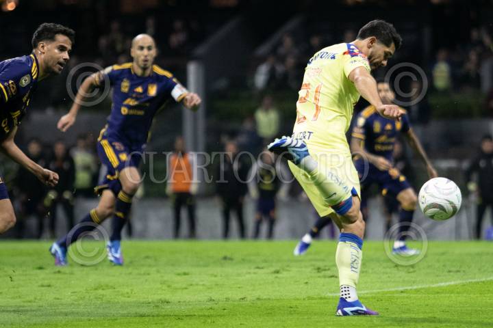 CIUDAD DE MÉXICO, 17DICIEMBRE2023.- Las Águilas del América empatan a cero goles con los Tigres de la UANL, durante el juego de vuelta de la Liga MX en el Estadio Azteca. FOTO: MOISÉS PABLO/CUARTOSCURO.COM