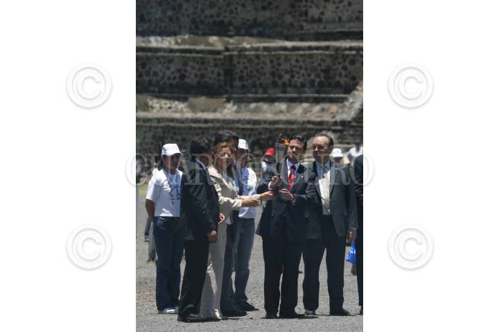 TEOTIHUACAN, EDOMEX.- 04JUNIO2007.- La campeona Mundial de alterofilia Soraya Jimenez al finalizar la ceremonia del encendido de fuego nuevo para los Juegos Panamericanos Río 2007, realizado en la Calzada de los Muertos en Teotihuacan. FOTO: SAÚL LÓPEZ/CUARTOSCURO.COM