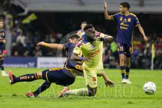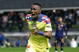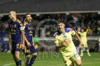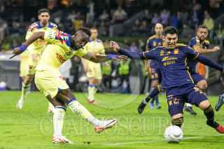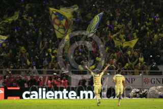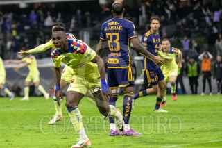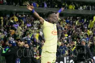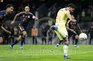 CIUDAD DE MÉXICO, 17DICIEMBRE2023.- Julián Quiñones del América anota durante la final contra Tigresa de la UANL. FOTO: MOISÉS PABLO/CUARTOSCURO.COM