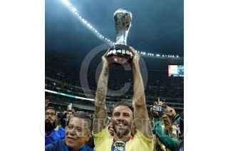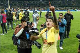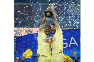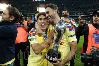 CIUDAD DE MÉXICO, 17DICIEMBRE2023.- Alejandro Zendejas, extremo derecho, y Miguel Layún, lateral, jugadores de las Águilas del América recibieron la Copa al ganar 3-0 contra los Tigres en la Final de Apertura 2023 en el Estadio Azteca. FOTO: GRACIELA LÓPEZ/CUARTOSCURO.COM